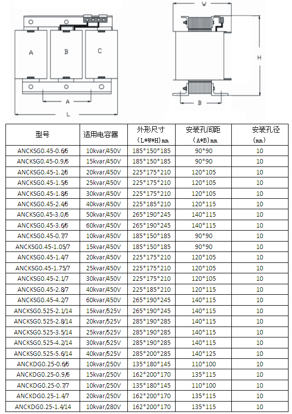 ANCK系列串聯電抗器與ANBSMJ系列自愈式低壓并聯電容器配套使用,主要用于提高0.4kV電力系統的功率因數,有效抑制電網的高次諧波,減輕電容器由諧波引起的過載,防止諧波放大,對電容器的安全運行,改善網絡電壓波形,提高供電質量和電網安全經濟運行起良好作用。應用范圍: