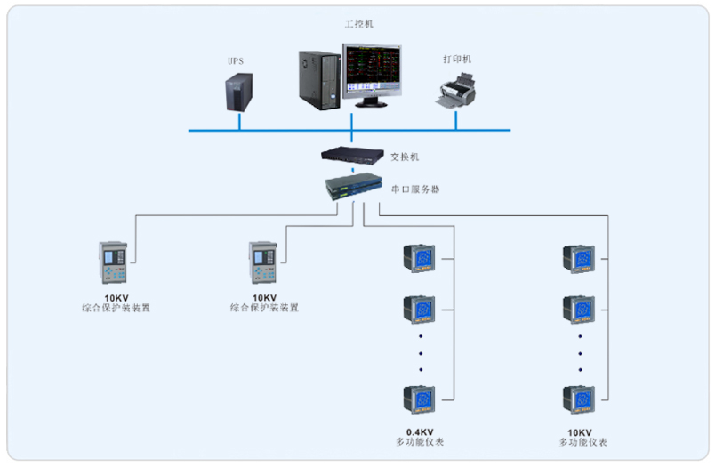 1.實現了各類用電設備的一次系統圖顯示、各回路實時電參量遙測、遙信,重要回路電能報表、直觀地顯示低壓系統各回路的運行狀況。