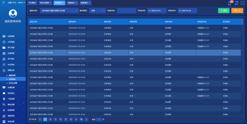 支持多種不同的報(bào)警類型,為保證平臺(tái)運(yùn)行,提供儀表與網(wǎng)關(guān)的故障報(bào)警提醒,提供多種能耗預(yù)警模型供用戶選擇與配置。